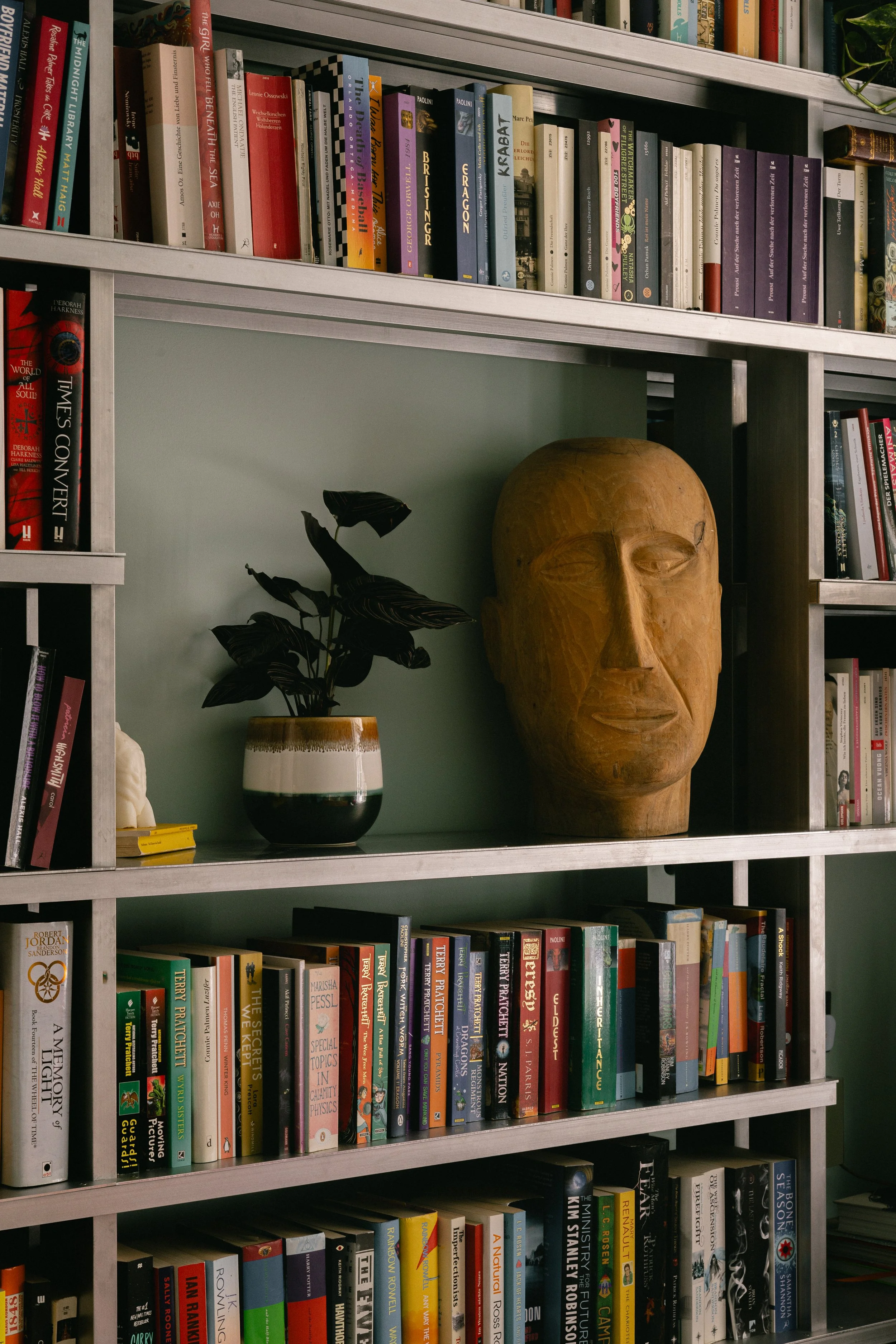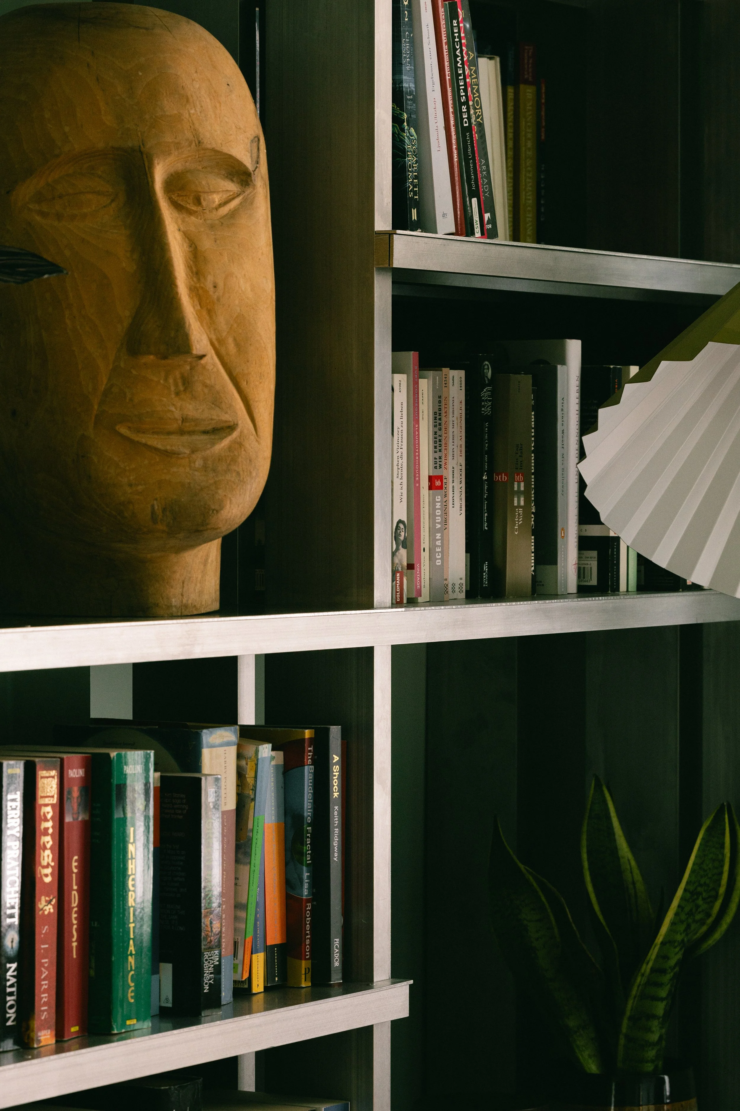 Additional standout pieces include a hallway unit made from Smile Plastics’ Cosmos material — an eco-conscious surface crafted from recycled plastic bottles — which provides efficient storage and a striking entrance feature. In the downstairs library, a 3.5-meter-long aluminium shelving unit serves as both storage and a display for books and artworks. These bespoke pieces showcase our expertise in creating timeless, functional designs that honor both the home’s history and the client’s vision.