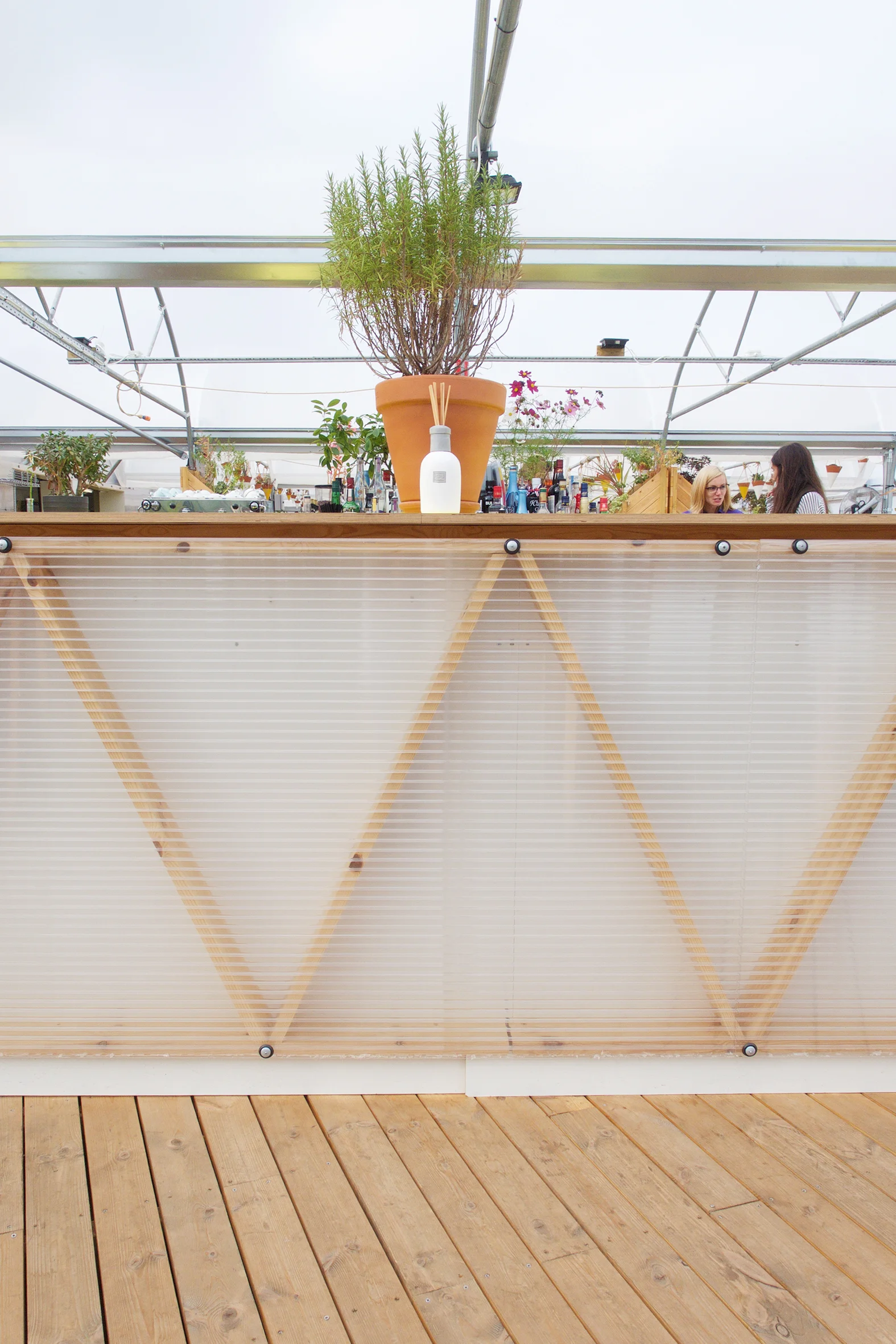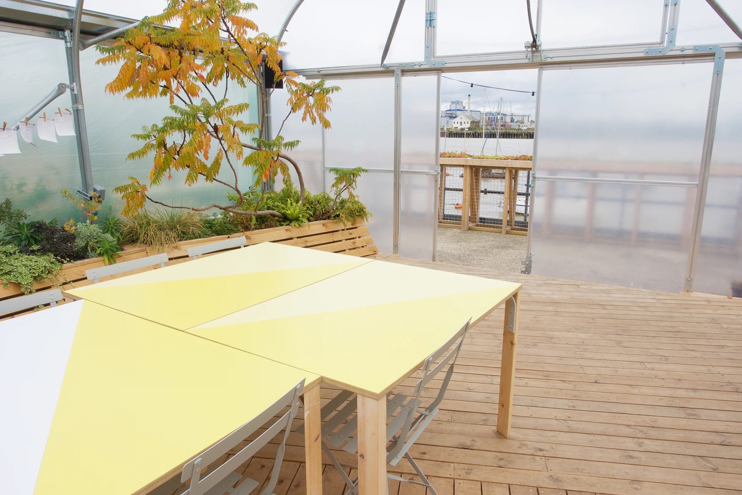 Working for Wayward Architects and Secret Productions, their vision was to turn a concrete ferry jetty into a green house restaurant featuring thousands of plants re-homed from Chelsea Flower Show.